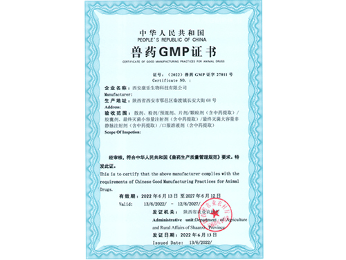 公司于2005年元月份立項(xiàng)興建,初始投資一千萬(wàn)元,先后建成水針(注射劑)、片劑、顆粒劑、散 劑、粉劑、預(yù)混劑六條生產(chǎn)線(xiàn)及質(zhì)檢中心。并于2006年元月一次性通過(guò)農(nóng)業(yè)部GMP動(dòng)態(tài)驗(yàn)收,準(zhǔn)予投產(chǎn)。成立新獸藥部,追 加投資兩千萬(wàn)元新增中藥提取、最終滅菌大容量非靜脈注射液(注射劑)、口服溶液劑三條生產(chǎn)線(xiàn),并于2014年4月27日順利通過(guò)農(nóng)業(yè)部第三次驗(yàn)收。本公司現(xiàn)擁有九 條獸藥生產(chǎn)線(xiàn),其中包括:最終滅菌小容量注射液、最終滅菌大容量非靜脈注射液、口服溶液劑、中藥提取、粉劑、散劑、片劑、預(yù)混劑、顆粒劑。公司已獲準(zhǔn) 100余種國(guó)標(biāo)文號(hào)產(chǎn)品,銷(xiāo)往全國(guó)各地。